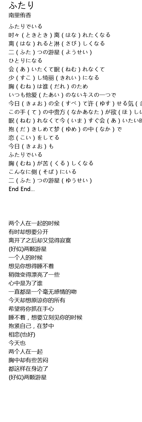 | [00:23.12] | 离(はな)れると淋(さび)しくなる |