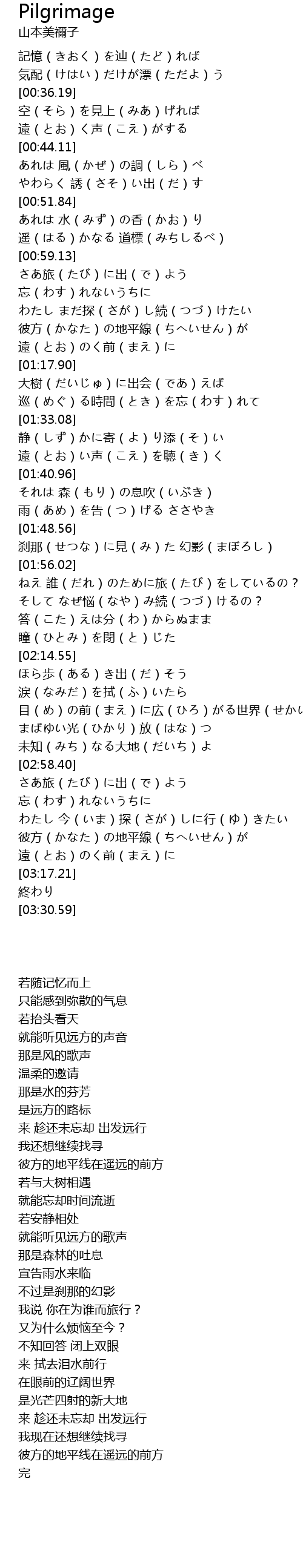| [02:58.80] | さあ旅(たび)に出(で)よう 忘(わす)れないうちに |
