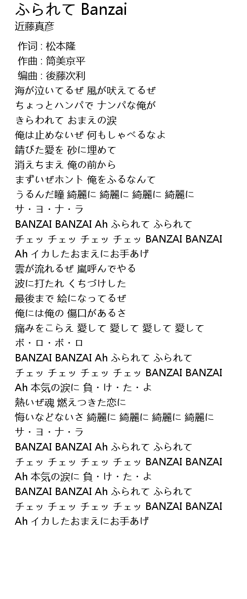 | [02:00.950] | BANZAI BANZAI Ah ふられて ふられて |
