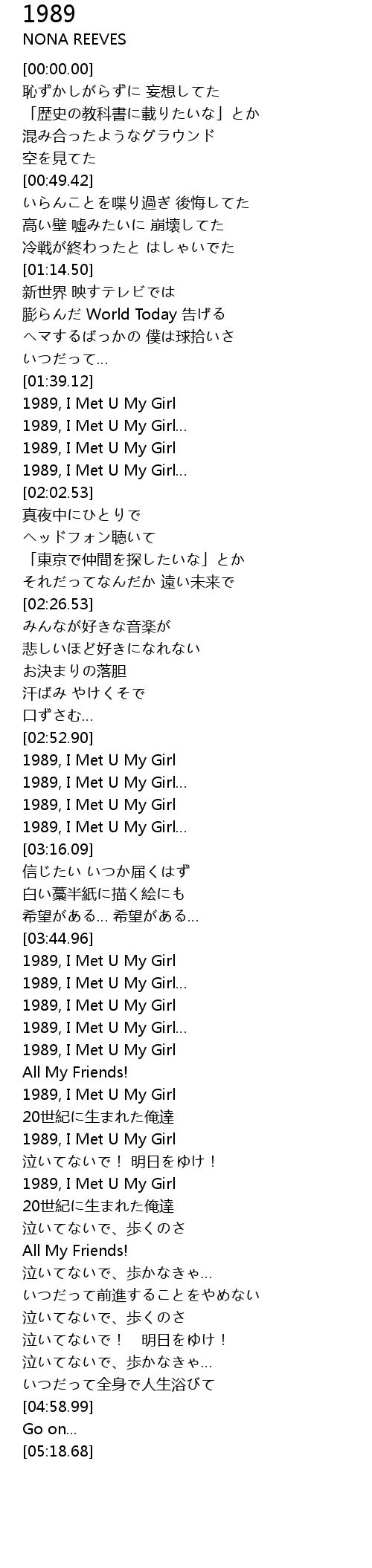 1989, I Met U My Girl |