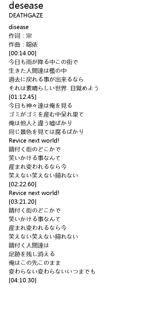 | [01:29.85] | ゴミがゴミを産む中呆れ果て |