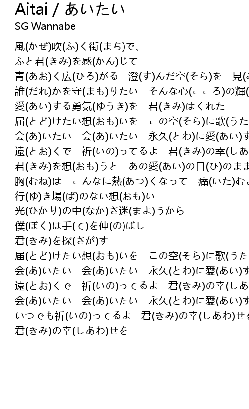 | [03:47.59] | いつでも祈(いの)ってるよ 君(きみ)の幸(しあわ)せを |