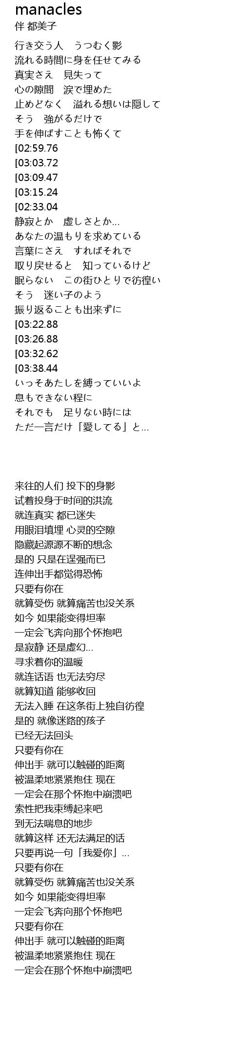 | [03:38.44] | 一定会在那个怀抱中崩溃吧 |