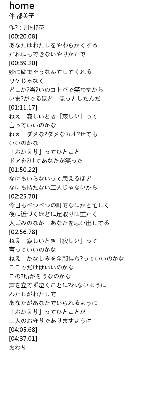 | [01:02.70] | いま?がでるほど ほっとしたんだ |