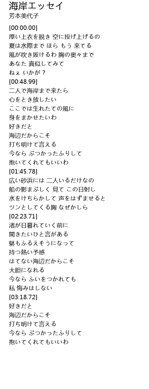 | [01:56.20] | 広い砂浜には 二人いるだけなの |