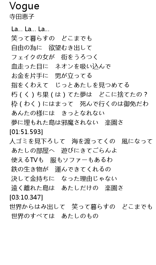 | [02:59.336] | 遠く離れた島は あたしだけの 楽園さ |