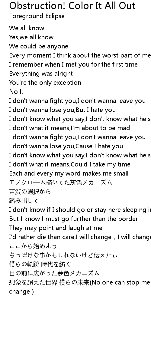 | [00:46.40] | I don' t wanna lose you, But I hate you |