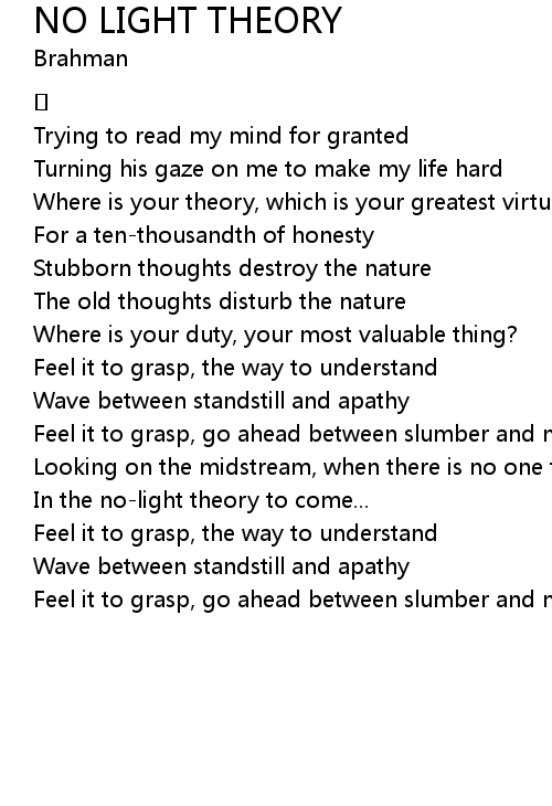 | 歌曲 | NO LIGHT THEORY |