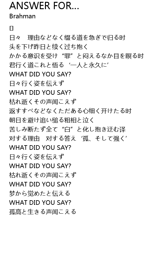 | 歌曲 | ANSWER FOR… |