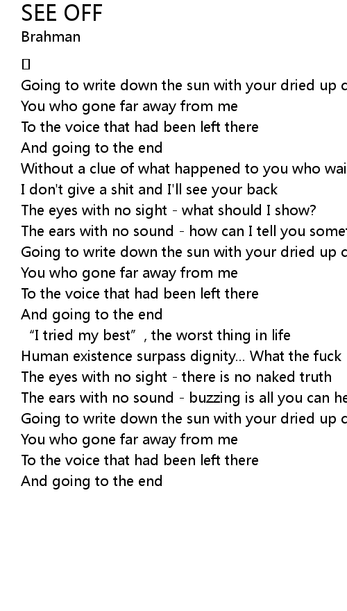| 歌曲 | SEE OFF |
