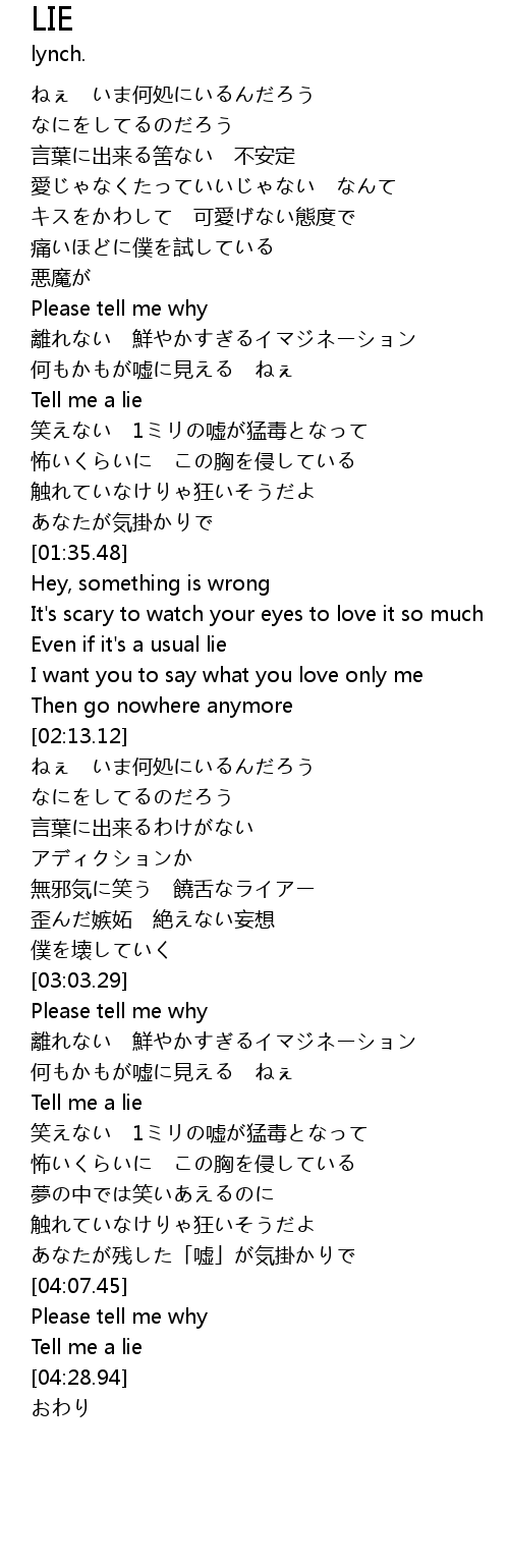 | [02:51.08] | 無邪気に笑う 饒舌なライアー |