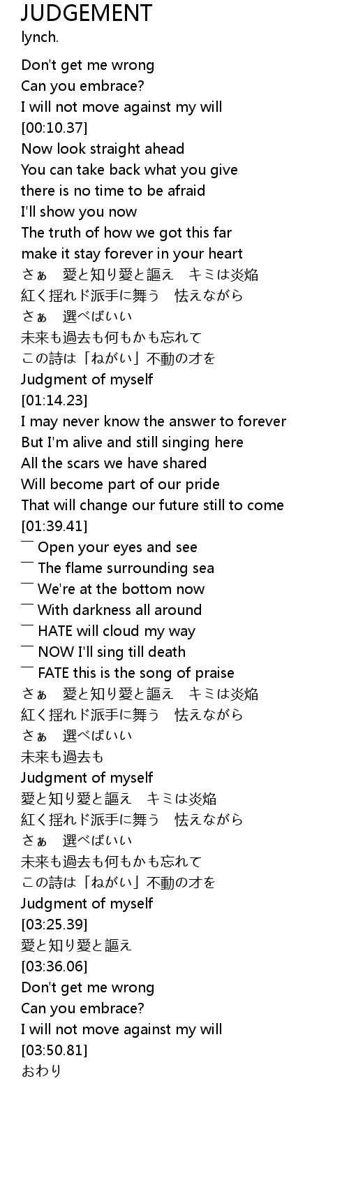 | [03:22.93] | Judgment of myself |