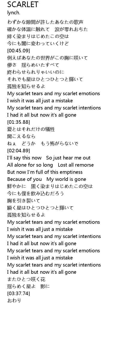 | [03:12.71] | My scarlet tears and my scarlet intentions |