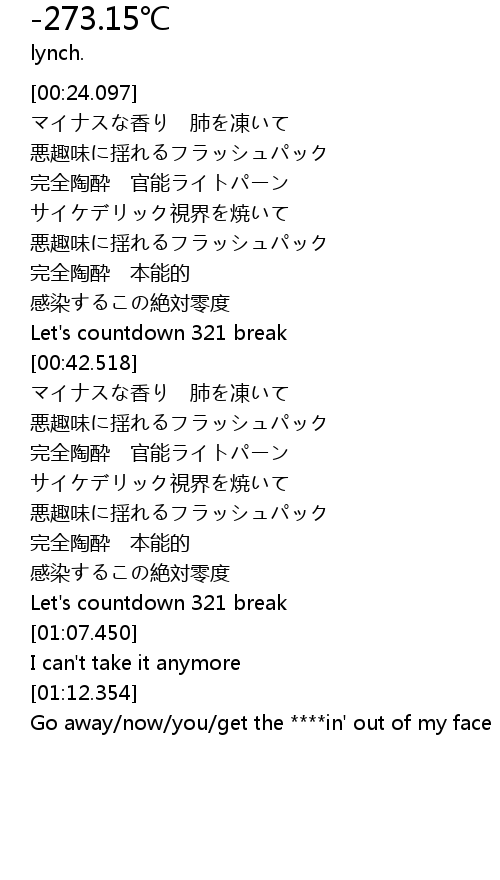 | [00:37.709] | 感染するこの絶対零度 |