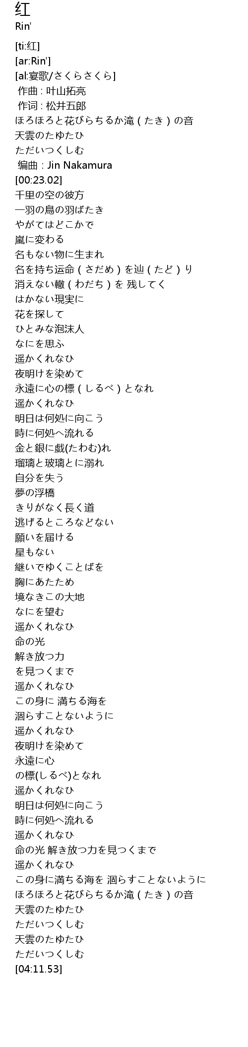| [00:15.26] | biān qǔ: Jin Nakamura |