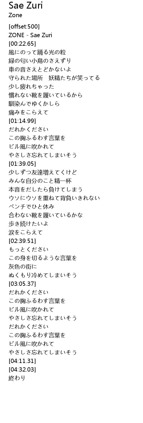 | [00:00.00] | ZONE Sae Zuri |