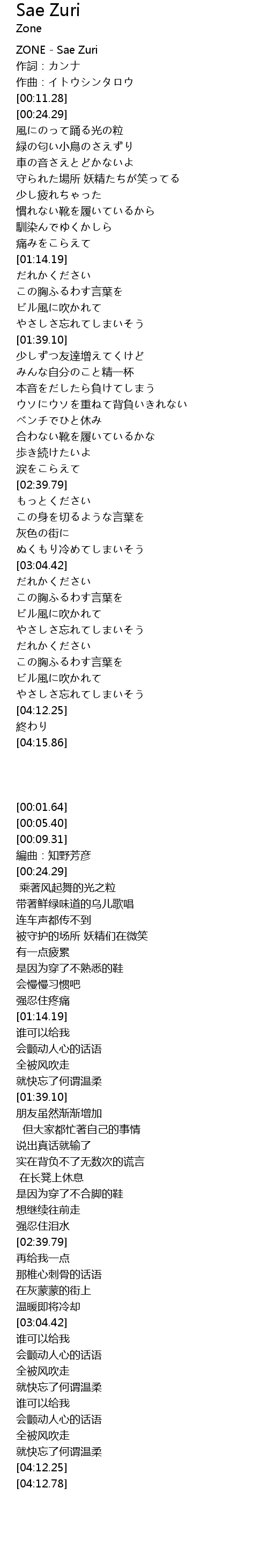 | [00:01.64] | ZONE Sae Zuri |