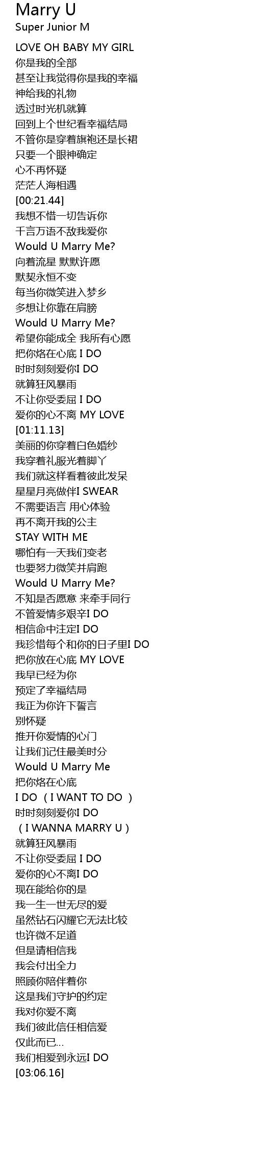 | [00:30.51] | Would U Marry Me? |