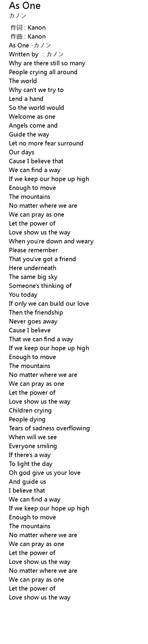 | [03:43.783] | We can pray as one |