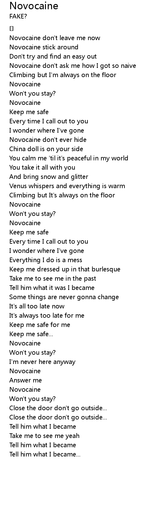 | Novocaine don't ever hide | |