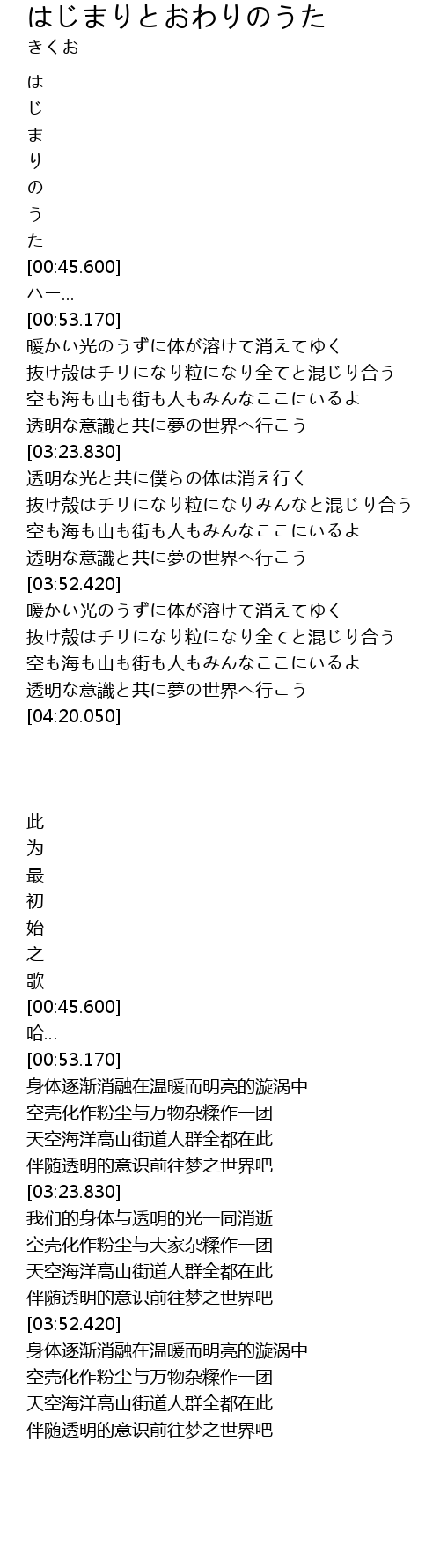 | [03:25.140] | 透明な光と共に僕らの体は消え行く |