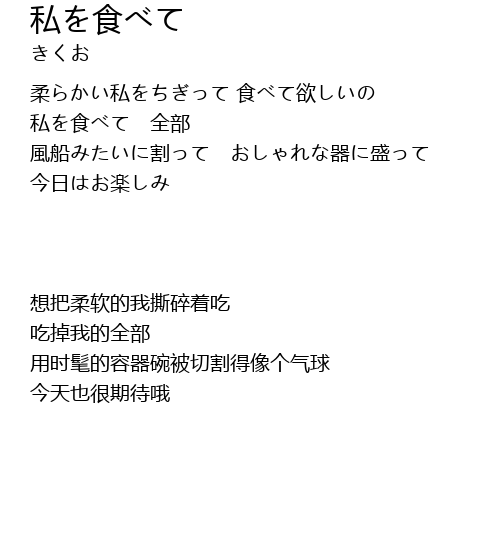 | [00:00] | 柔らかい私をちぎって 食べて欲しいの |