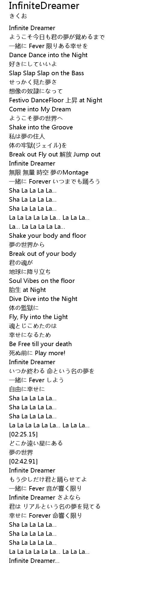 | [03:00.69] | Infinite Dreamer |