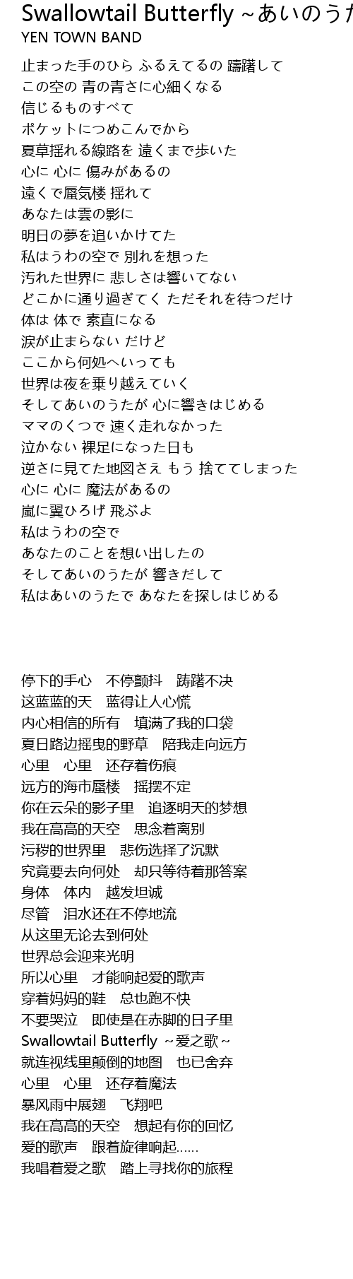 | [03:23.390] | Swallowtail Butterfly ~爱之歌~ |