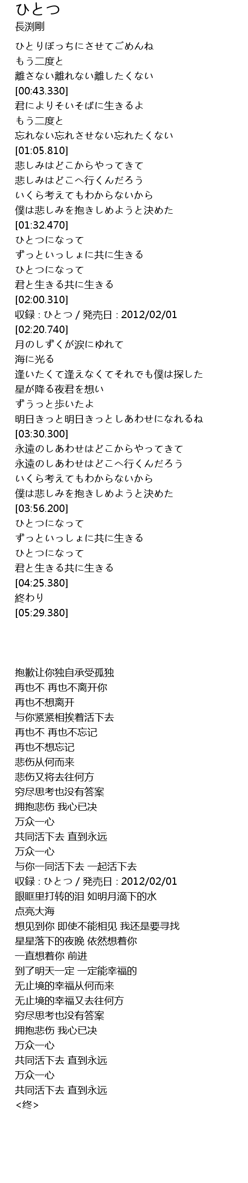 | [02:10.740] | 収録∶ひとつ/発売日∶2012/02/01 |