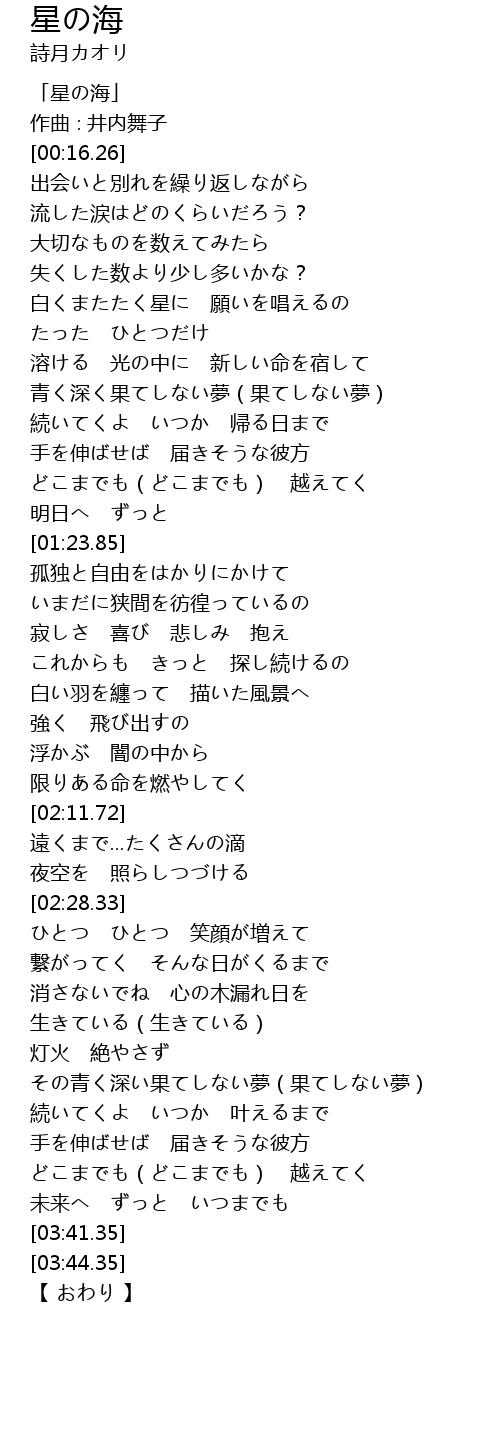 | [00:39.10] | 白くまたたく星に 願いを唱えるの |