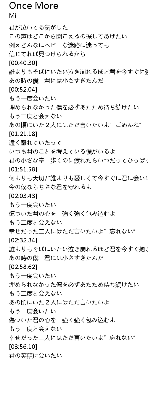 | [03:43.94] | 幸せだった二人にはただ言いたいよ”忘れない” |