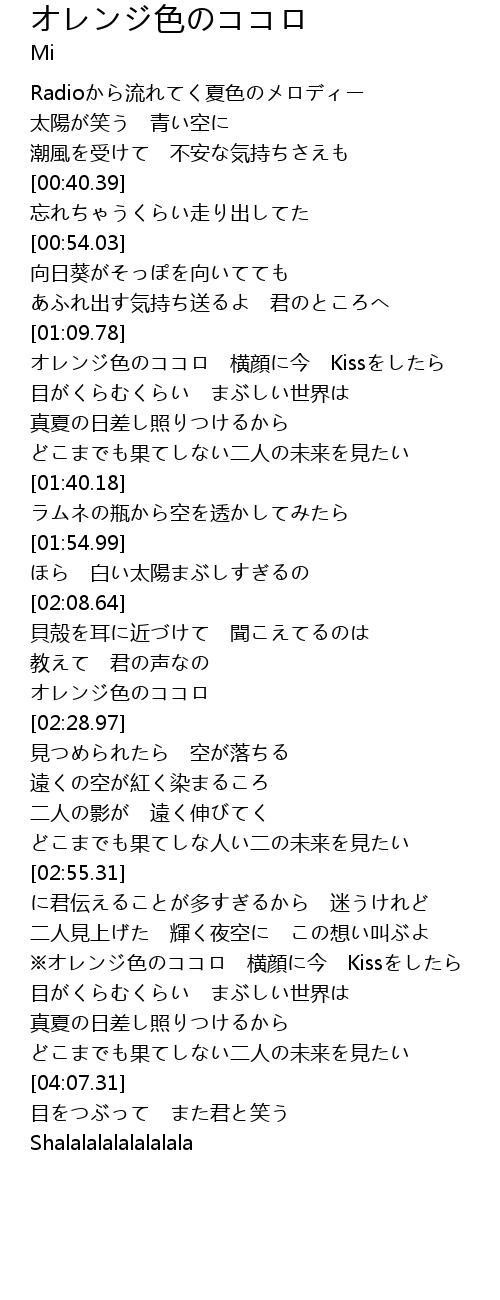 | [02:24.75] | オレンジ色のココロ |