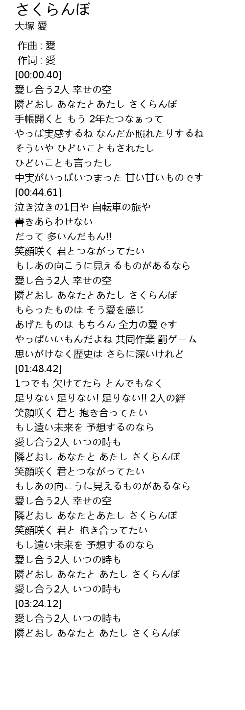 | [03:11.00] | 隣どおし あなたと あたし さくらんぼ |