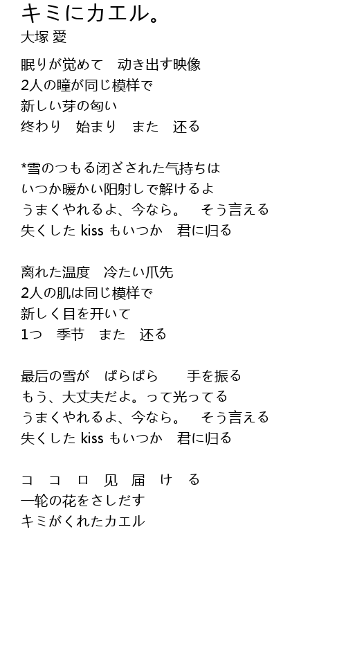 | 失くした kiss もいつか 君に归る | |