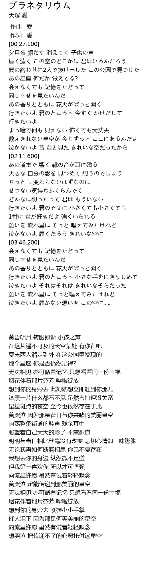 | [03:09.260] | 向流星许愿 虽然有试着轻轻默念 |