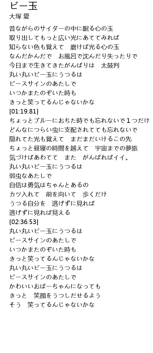 | [03:00.05] | 丸い丸いビー玉にうつるは |