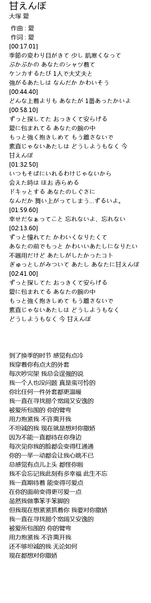 | [02:33.20] | ぎゅっとしがみついて あたし あなたに甘えんぼ |