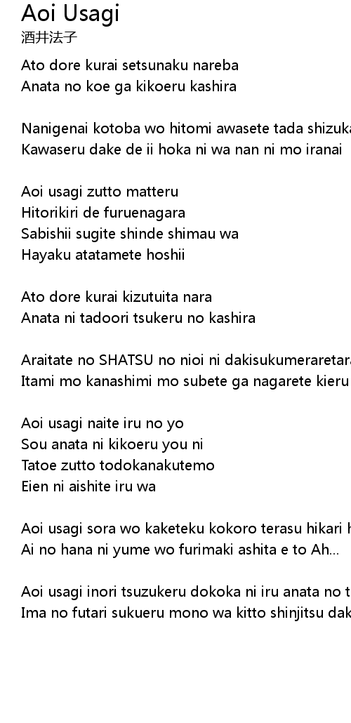 | Aoi usagi inori tsuzukeru dokoka ni iru anata no tame | |