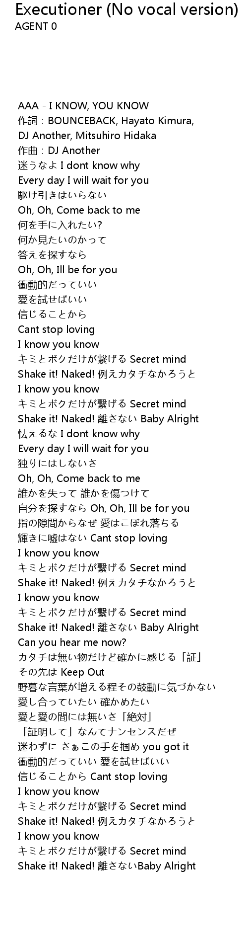 | [00:00.00] | AAA - I KNOW, YOU KNOW |