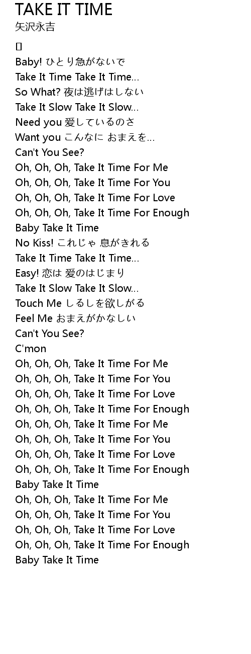 | Oh, Oh, Oh, Take It Time For Enough | |