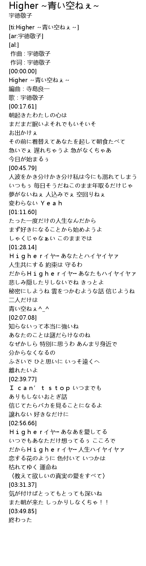 | [ti:Higher ~青い空ねぇ~] | |