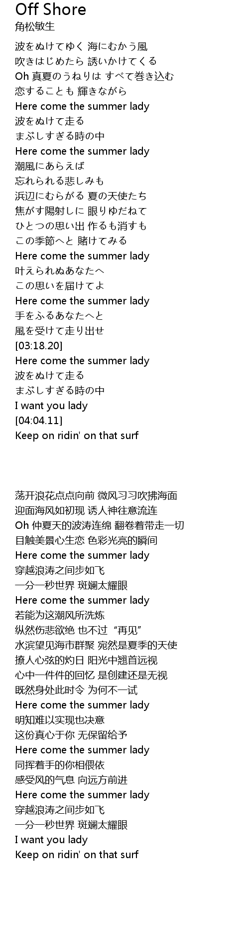 | [01:12.31] | Oh 真夏のうねりは すべて巻き込む |