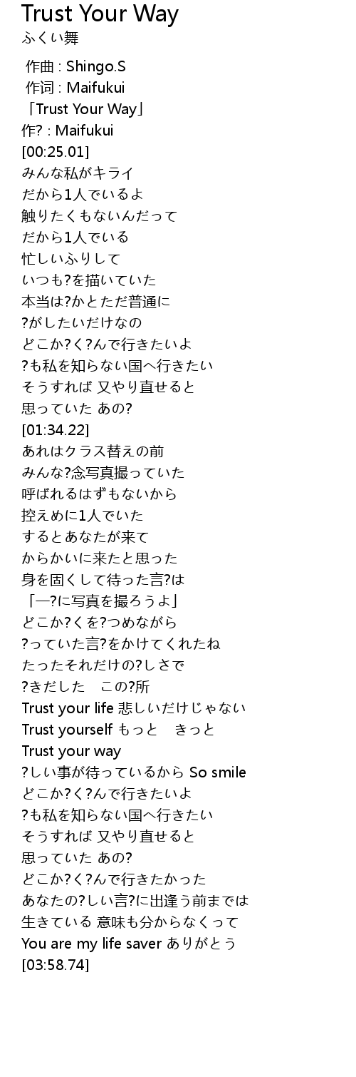 | [02:51.37] | Trust your life 悲しいだけじゃない |