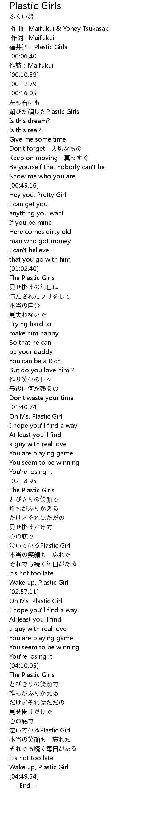 | [03:54.46] | Oh Ms. Plastic Girl |