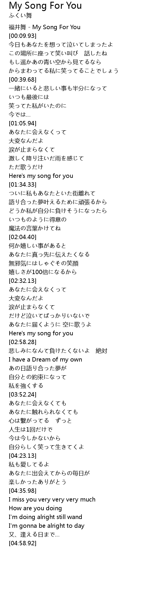 | [00:01.93] | fú jǐng wǔ My Song For You |