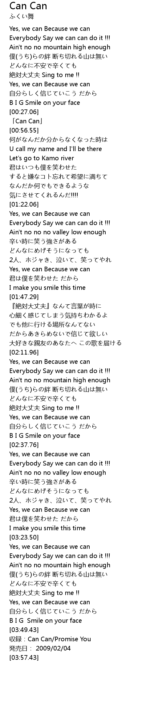 | [00:30.55] | 「Can Can」 |