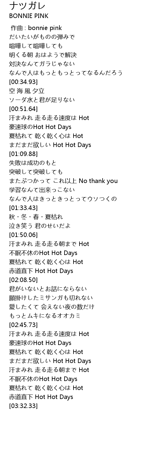 | [01:58.46] | 夏枯れて 乾く乾く心は Hot |