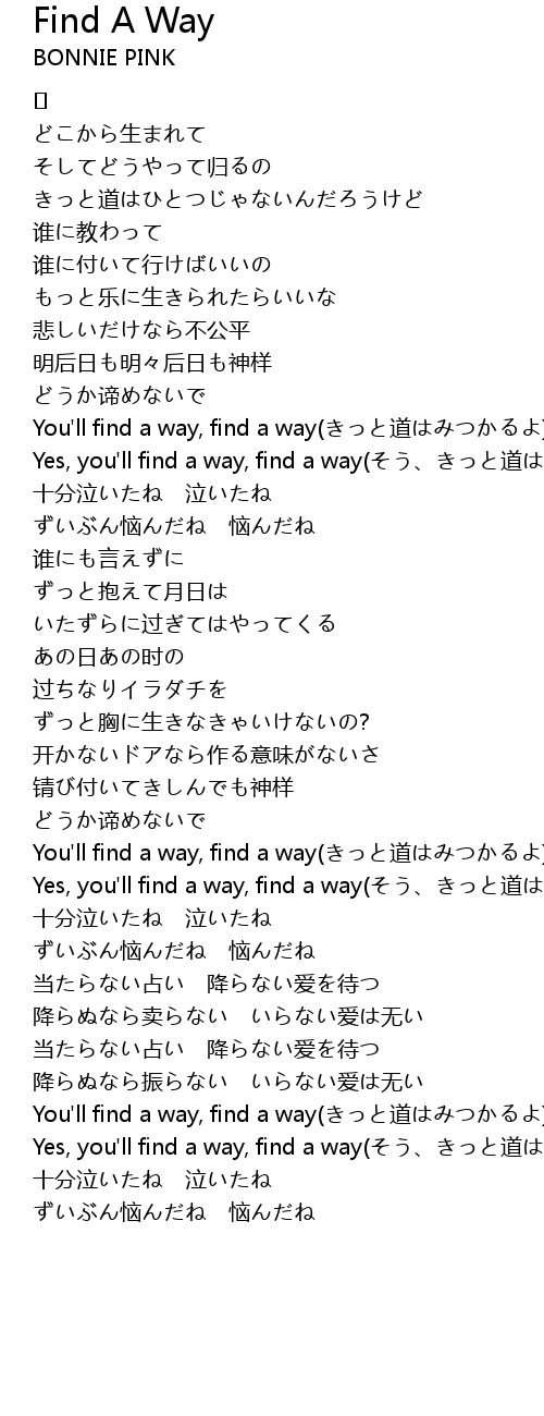 | You'll find a way, find a way(きっと道はみつかるよ) | |