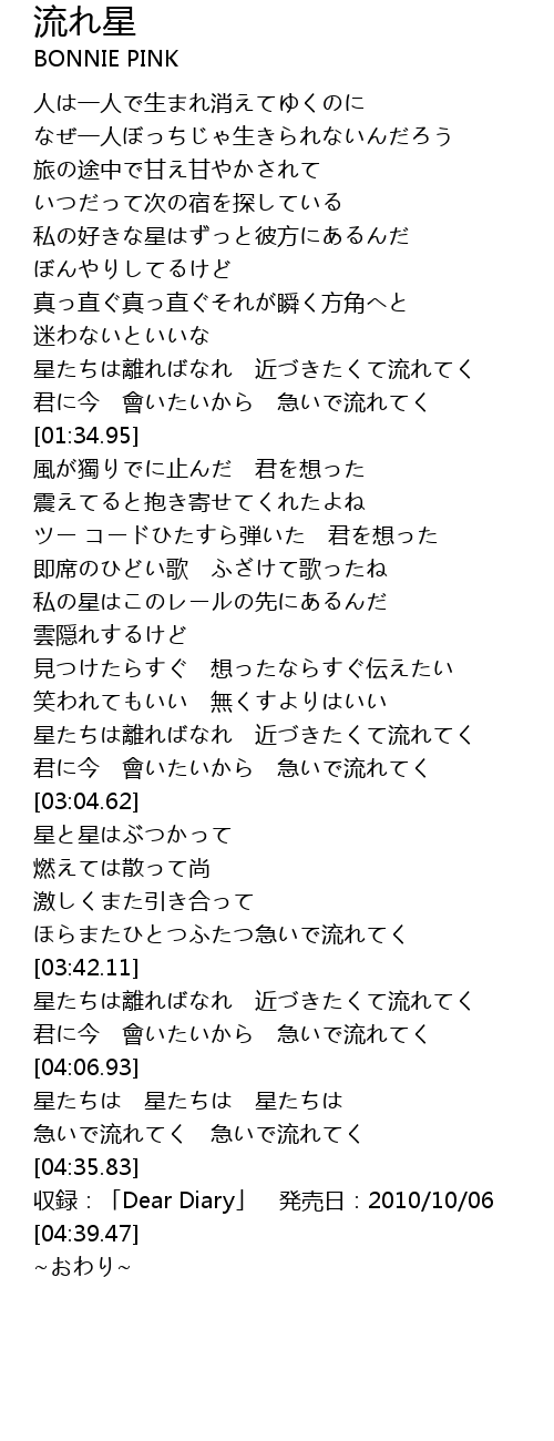 | [03:34.03] | ほらまたひとつふたつ急いで流れてく |