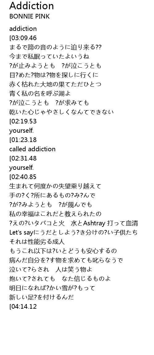 | [00:10.21][03:09.46][04:32.71] | Bonnie Pinkaddiction |